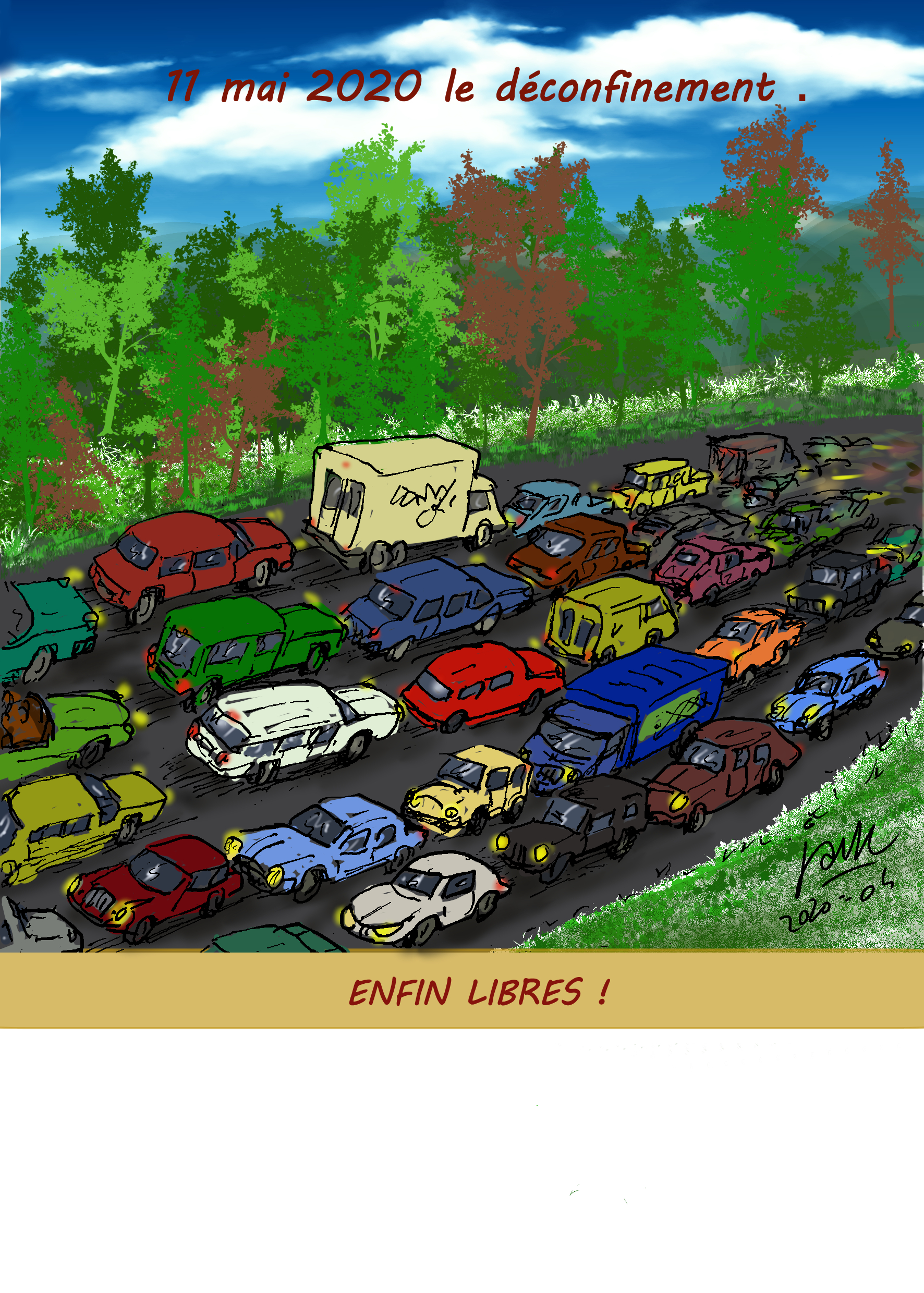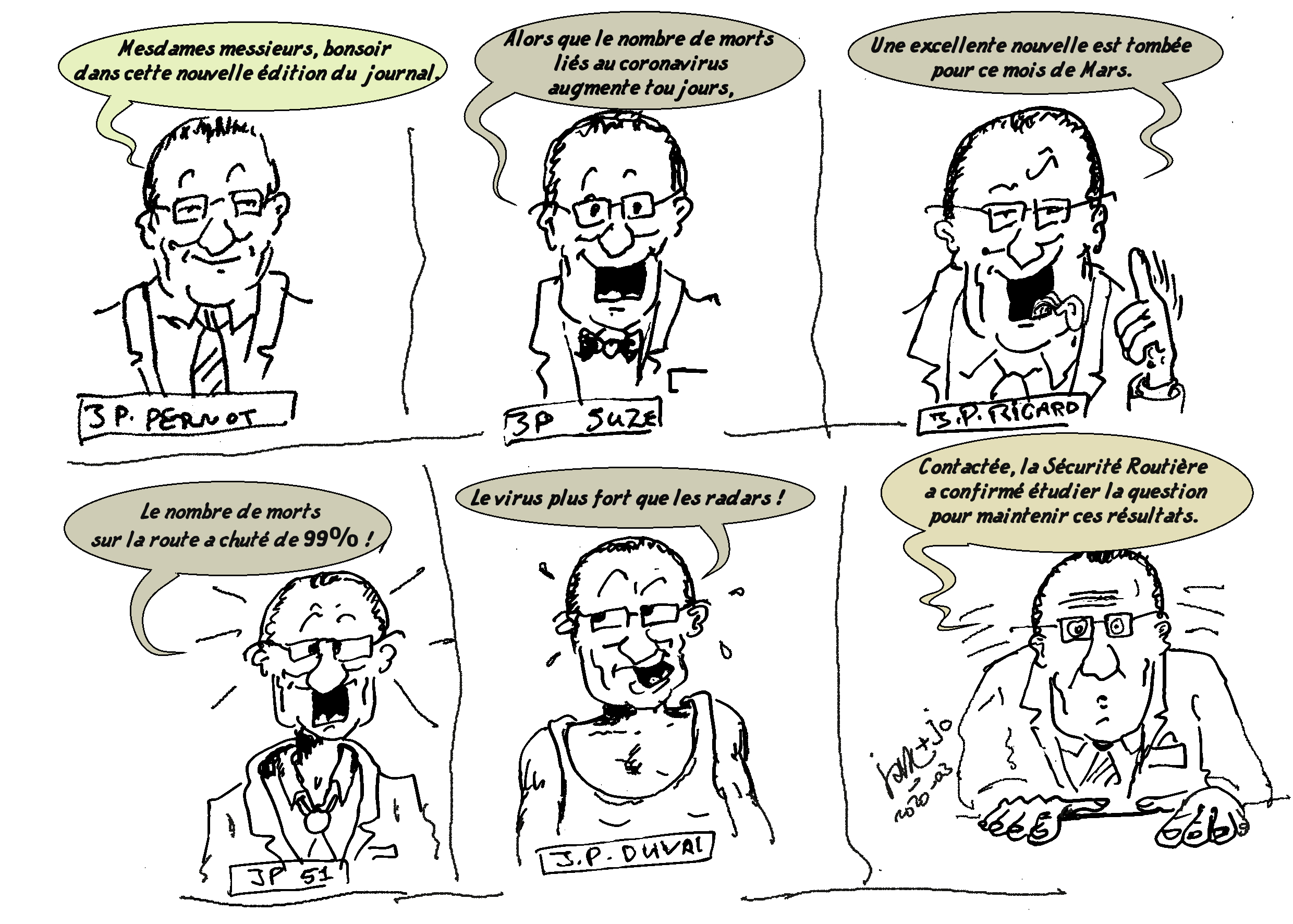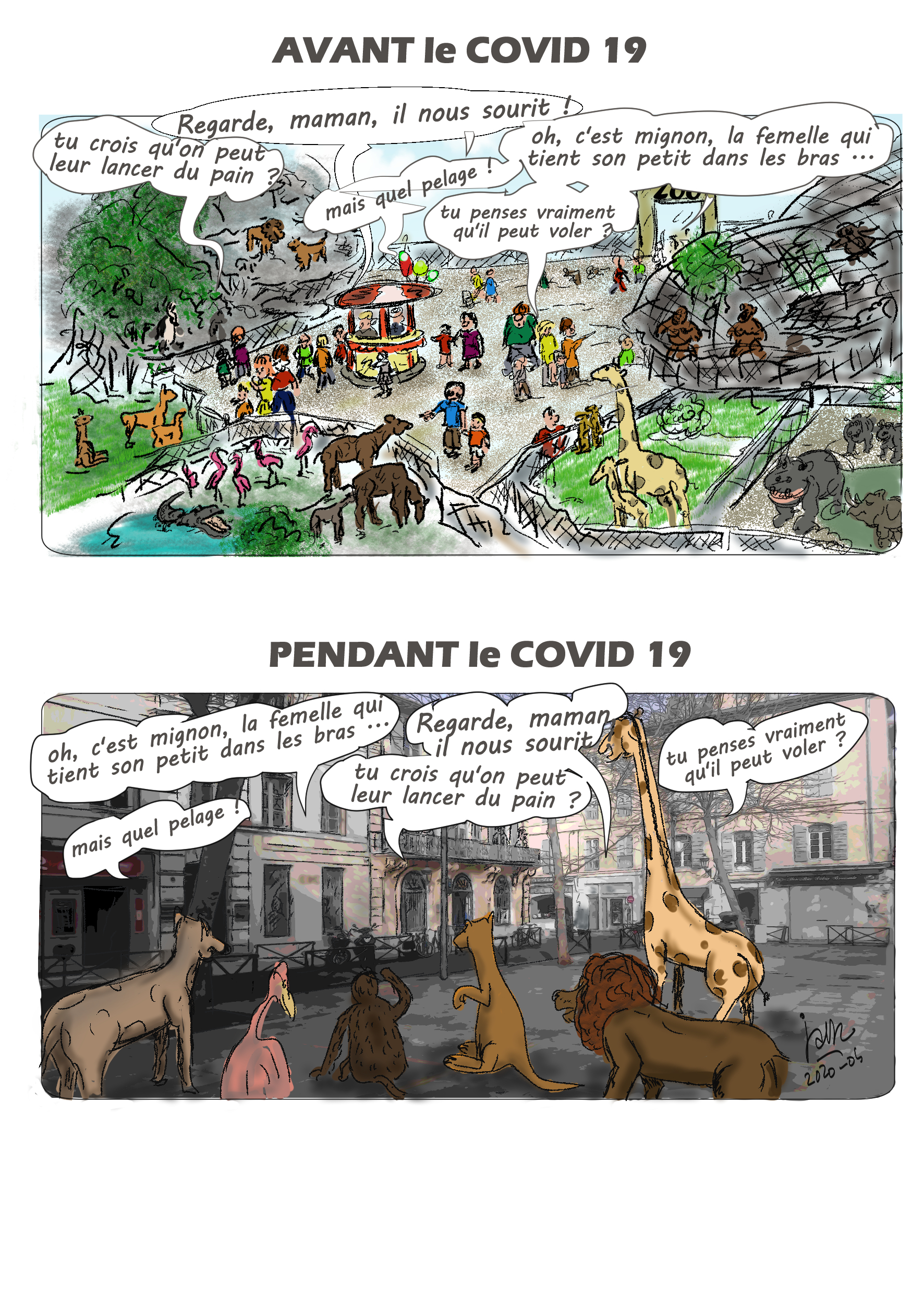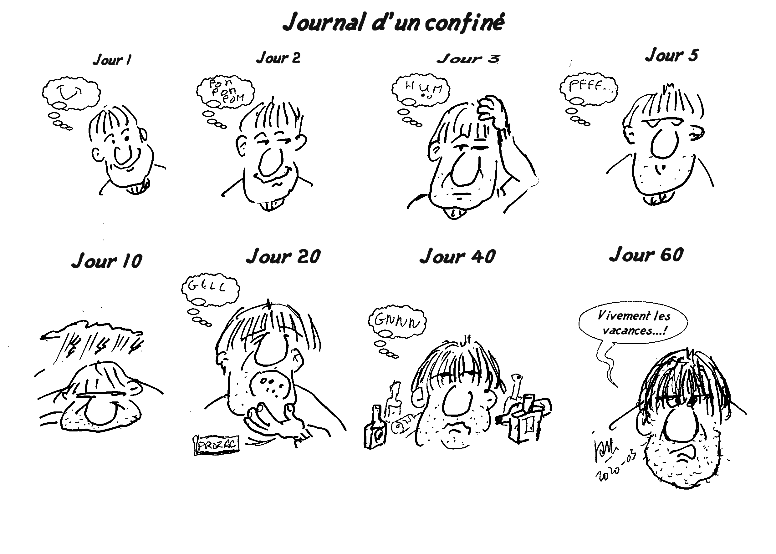 Illustrations créées quotidiennement (ou presque) pour remonter le moral des confinés...Cliquez sur l'image pour visionner les illustrations.