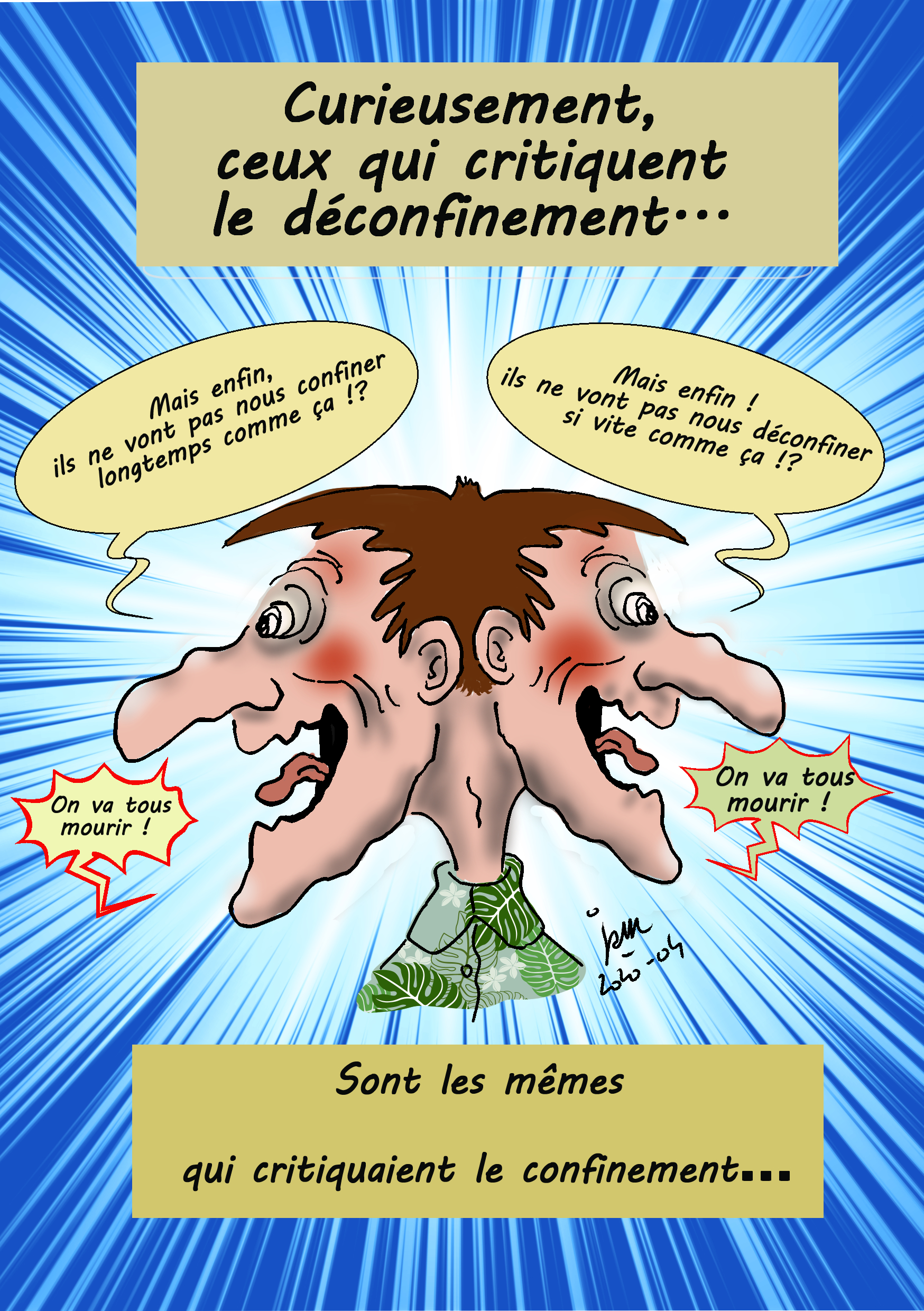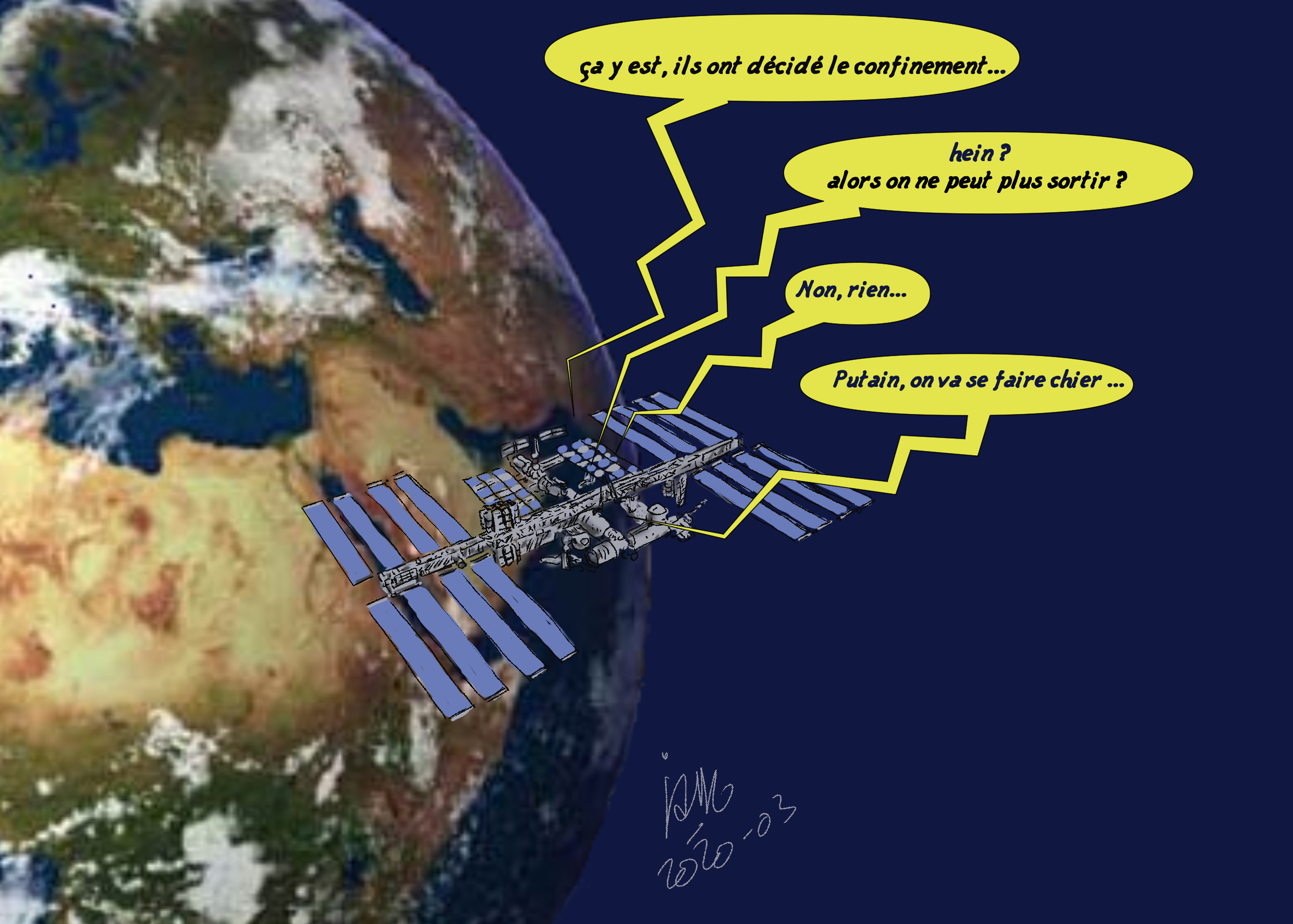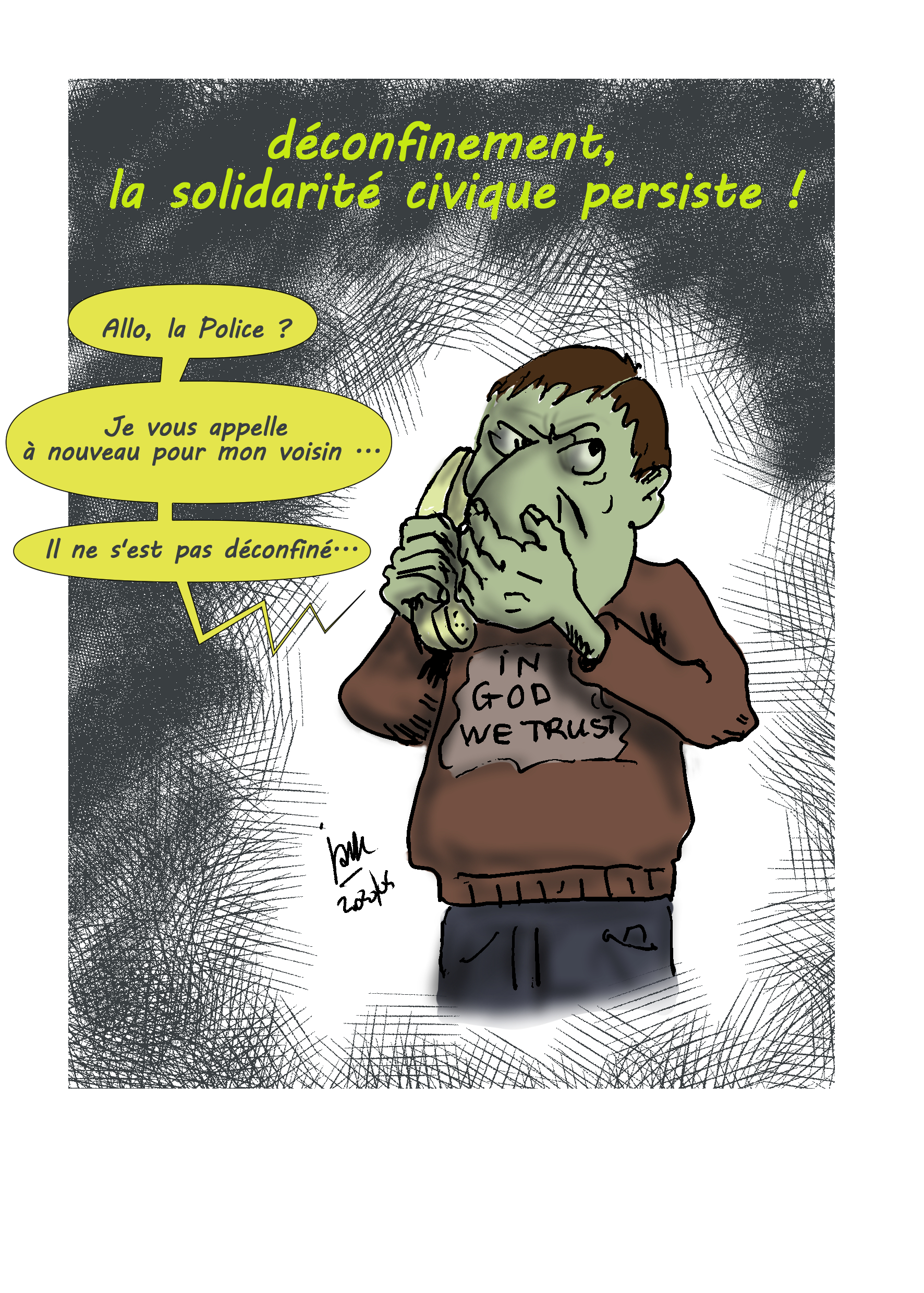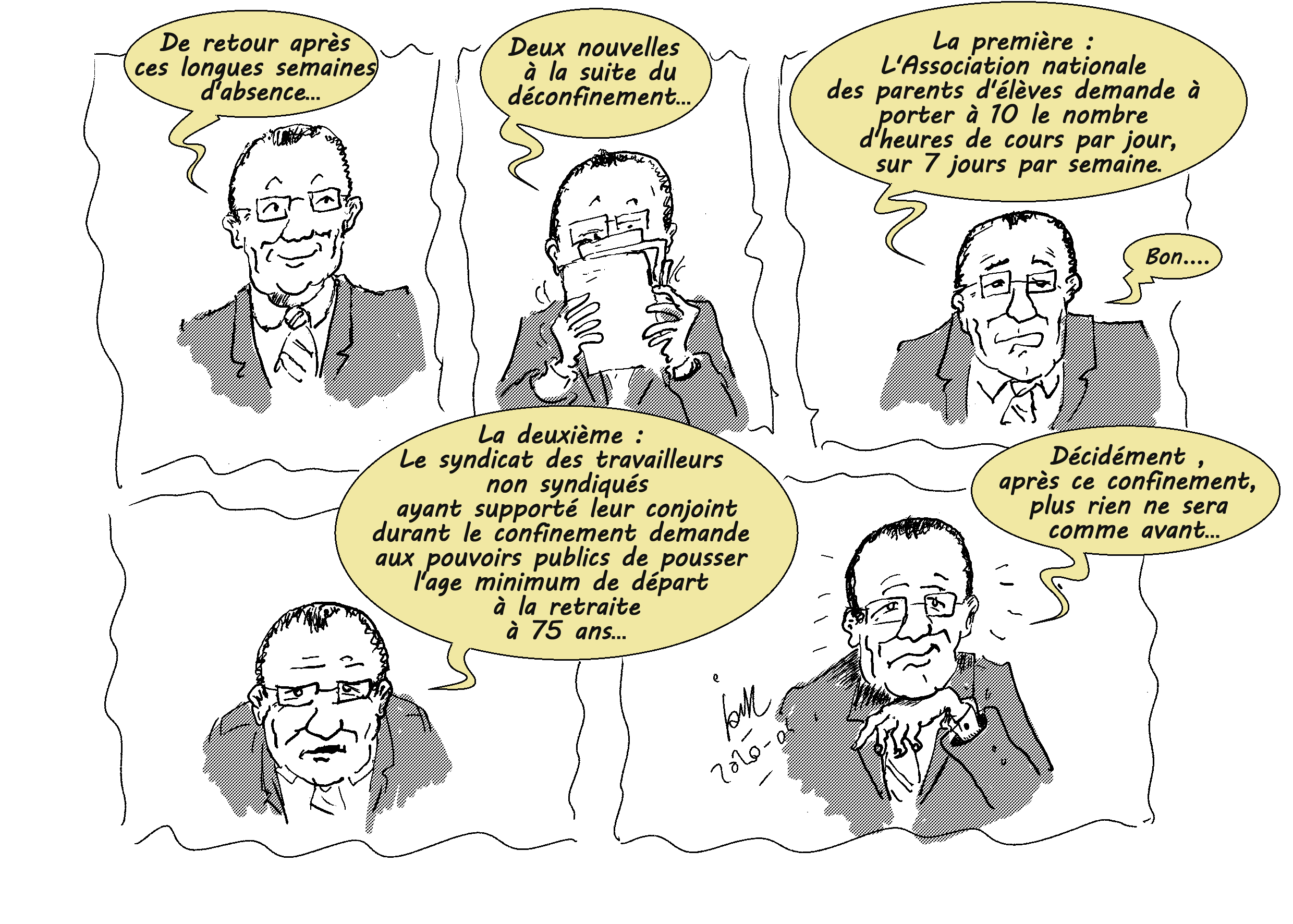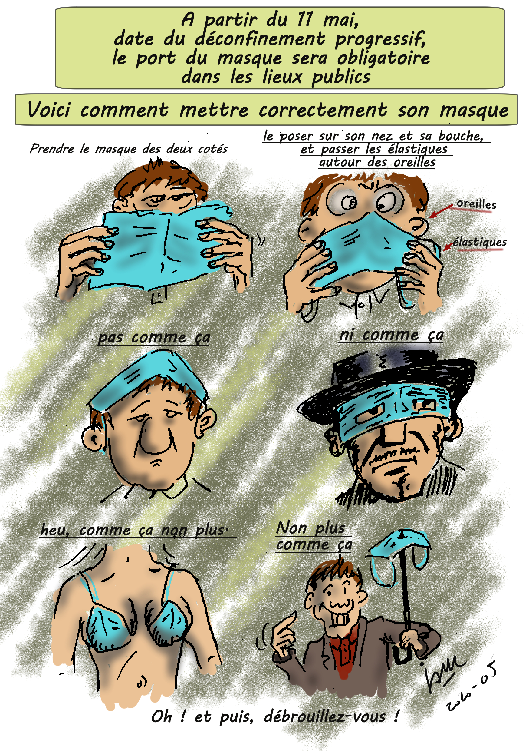 Illustrations créées quotidiennement (ou presque) pour remonter le moral des confinés...Cliquez sur l'image pour visionner les illustrations.