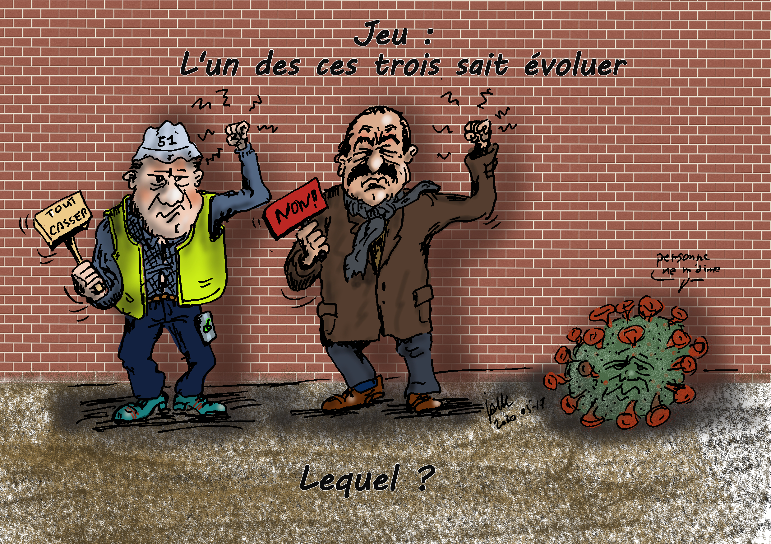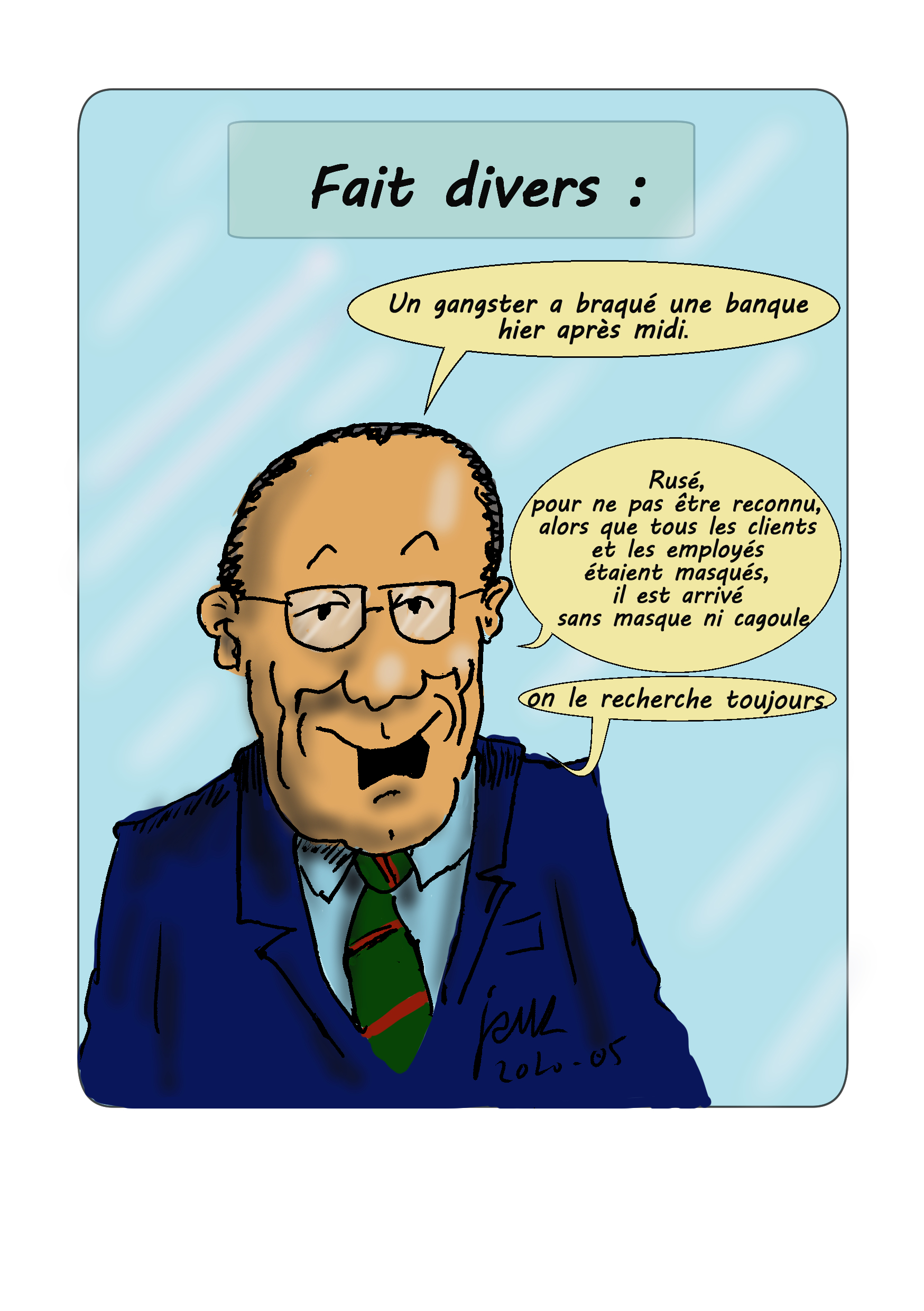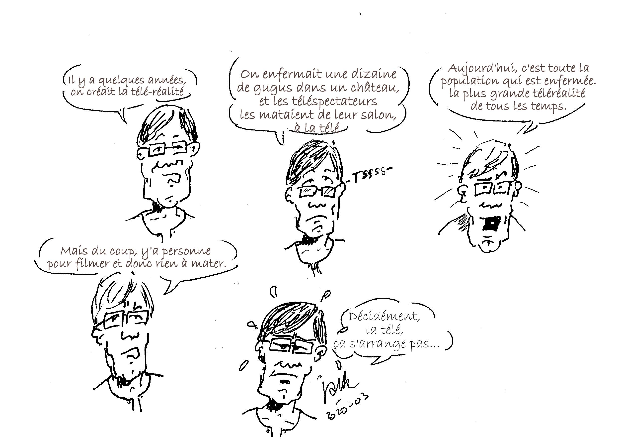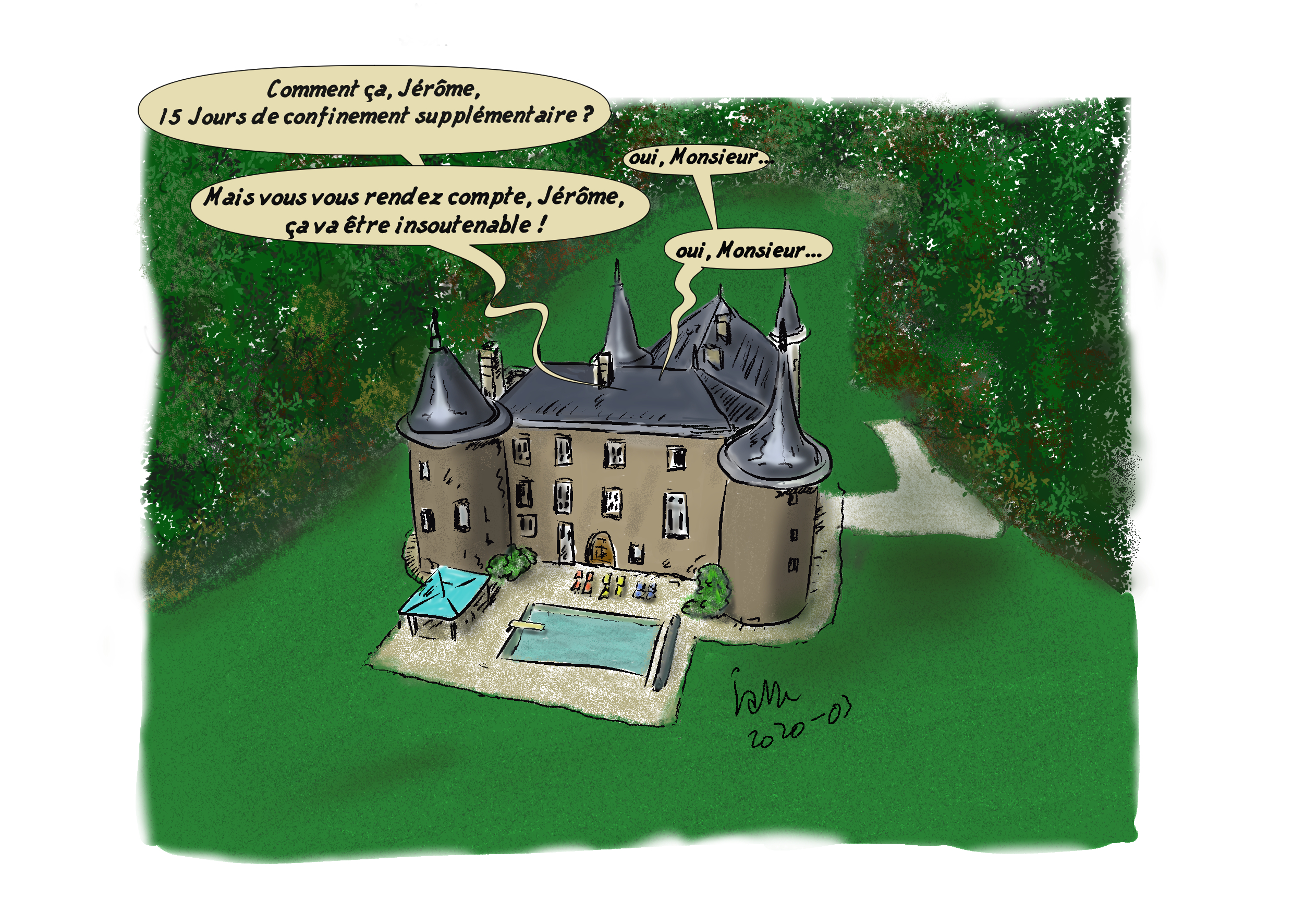 Illustrations créées quotidiennement (ou presque) pour remonter le moral des confinés...Cliquez sur l'image pour visionner les illustrations.
